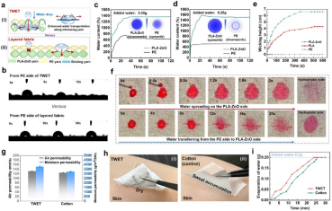 图4. 基于接结拓扑的热湿管理电子纺织品的单向导湿性能表征