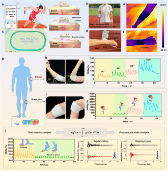 总结:该研究提出了一种分层拓扑设计策略,将拉伸与压力传感、热调控与导湿功能无缝集成于一块可呼吸、贴合人体的智能织物中。所设计的TWET不仅能够精准监测人体运动信号,还具备卓越的定向导汗与红外辐射降温能力。通过正交交错的气泡型压阻纱与可拉伸纱线,该织物在压力与拉伸传感中表现出高灵敏度和稳定性。同时,借助交织纱线结构,有效引导汗液由PE层向PLA-ZnO层迁移并加速蒸发,从而维持皮肤干爽舒适。TWET还展现出出色的光谱选择性辐射特性,使织物实现了相比棉织物约10°C的被动降温效果。在实际应用中,该多功能织物传感器可稳定感知热应激下的人体运动行为,为智能穿戴设备在健康监测、高温作业和户外运动等场景的推广应用提供了可靠支撑与新思路。