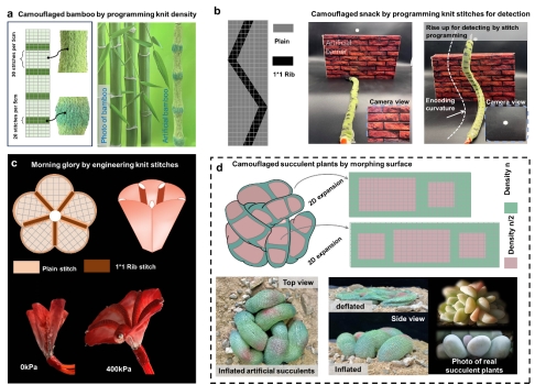 图4.结构异构软体针织机器仿生的竹子、蛇与多肉植物