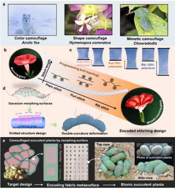 图1. 仿生伪装用局部应变约束纺织品的灵感与概念