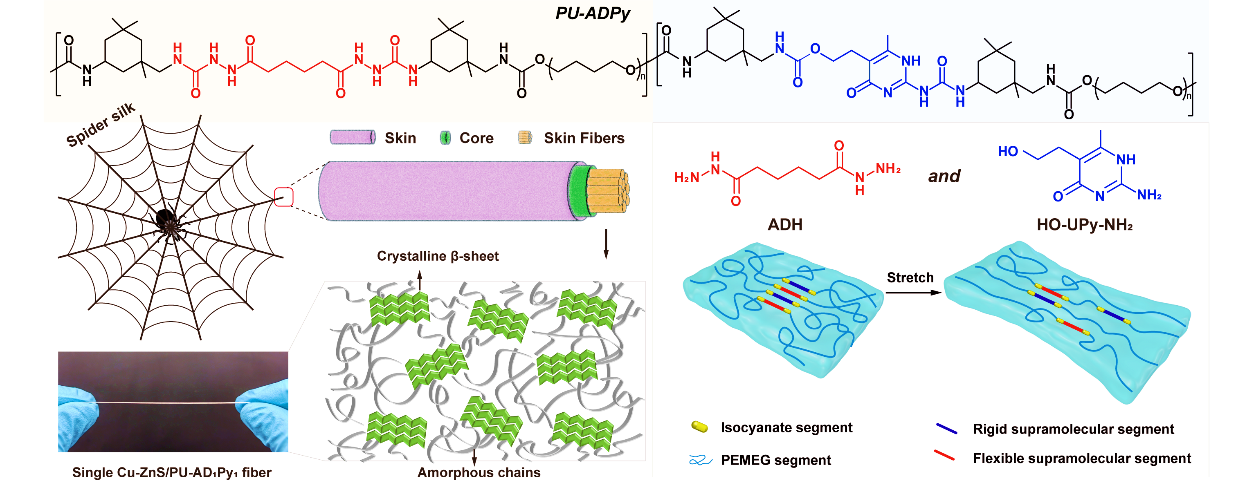 该研究工作以“Spider-silk-inspired dynamic poly(urethane-urea) networks withmechanical reinforcement via mismatched supramolecular interactions for luminescent fibers”为题发表在Journal of Materials Science & Technology期刊,通讯作者为ATM娱乐(中国)官方网站