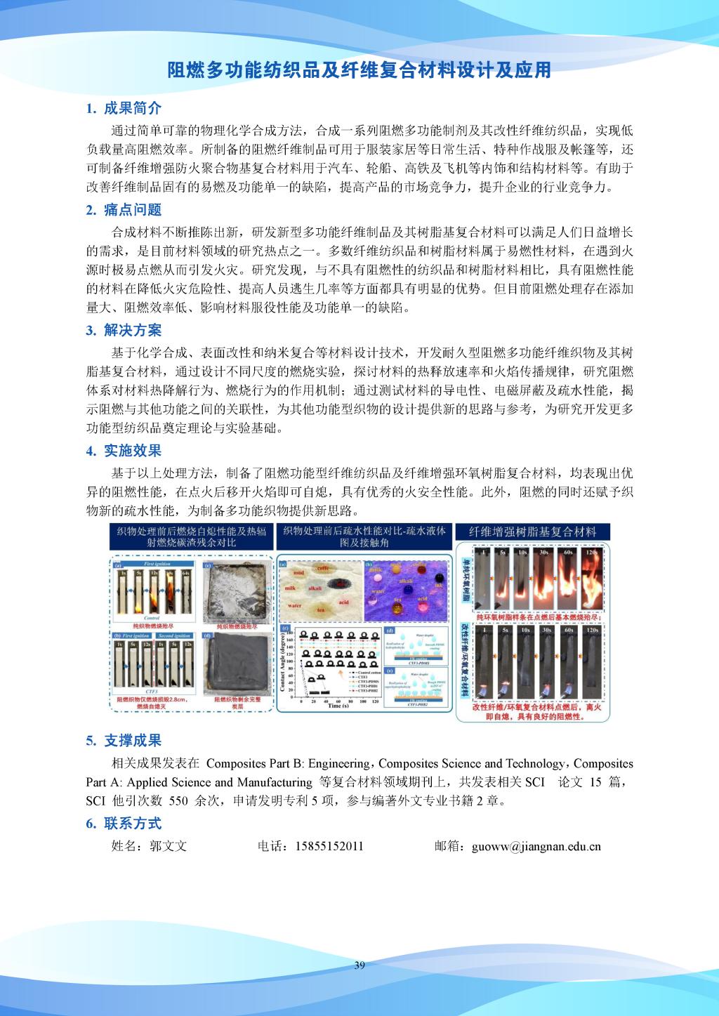 科研成果-阻燃多功能纺织品及纤维复合材料设计及应用