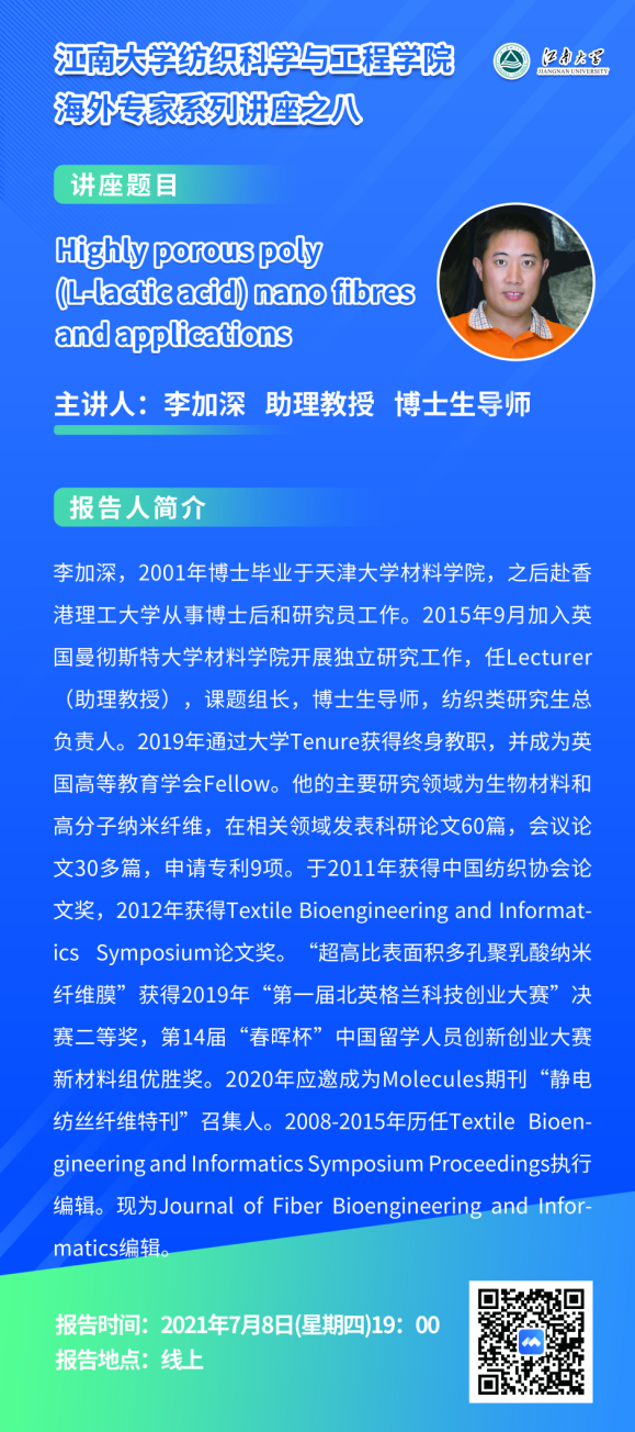报告题目:Highly porous poly(L-lactic acid) nano fibres and applications