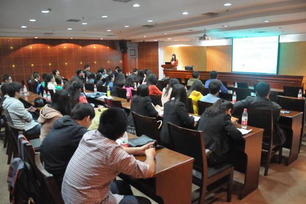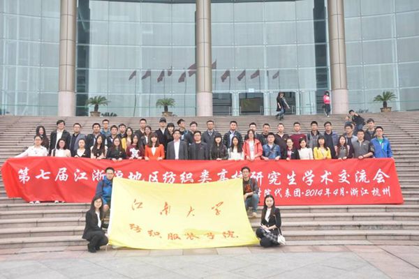 ,并进行了合影留念。下午1点整,“第七届江浙沪地区纺织学科研究生学术文化交流会”开幕式正式开始,来自五所学校的嘉宾代表进行了发言,任学宏教授对受邀参加此次活动表示感谢,并对江南大学纺织服装学院进行了简要的介绍。下午1点半,五所学校的15名研究生代表进行了学术汇报,此次学术交流分为材料类和纺织类两个分场,我校范菲、柯惠珍、洪文进三位研究生代表就各自的研究领域进行了精彩的报告,并与在场的研究生进行了互动交流。