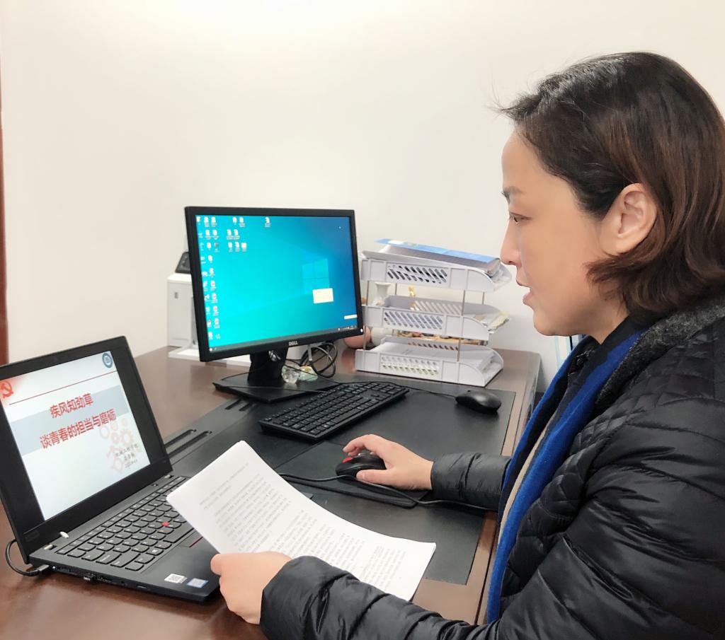 高雪梅的讲座主题是《疾风知劲草,谈青春的担当与磨砺》。她从“一次大考,读懂中国”、“一场疫情,认识青年”、“百年目标,我辈之责”三个方面娓娓道来。通过这场突如其来的疫情,大家切身感受到中国特色社会主义制度的优越性。她讲到,在十九届四中全会《决定》中表明中国特色社会主义制度具有13方面的优势,在疫情防控中,坚持中国共产党的领导、集中力量办大事、坚持以人民为中心等这些优势凸显。她由苏丹学者加法尔.卡拉尔.艾哈迈德的一篇文章和对他的采访,切入到中国青年在此次疫情中的表现,请战书、入党志愿书、坚守一线等多方面展示了青年们的敢于担当、勇于担责。高雪梅还带领大家一起学习了习近平2020年3月15日给北京大学援鄂医疗队全体“90后”党员的回信,让培训学生深有感触。同时,她通过介绍当前国际形势、国家发展成就等多角度引导青年一是学会深入思考,坚定“四个自信”;二是要懂得科技重要性,工科学生要有技术在身;三是要传承家国情怀,为百年目标而努力。