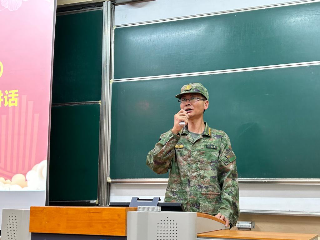 伏曦从军训细则及要求、军训日程及安排、成绩评定及提示等方面对本次军训进行全面介绍。她鼓励同学们要敢于在苦和累中磨练自己,以饱满的精神和顽强的意志走好每一个步伐,喊好每一个口令,做好每一个动作,交出大学迷彩生活的满分答卷。