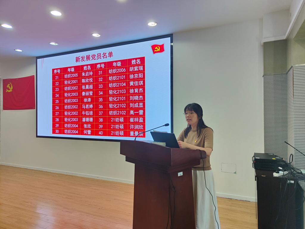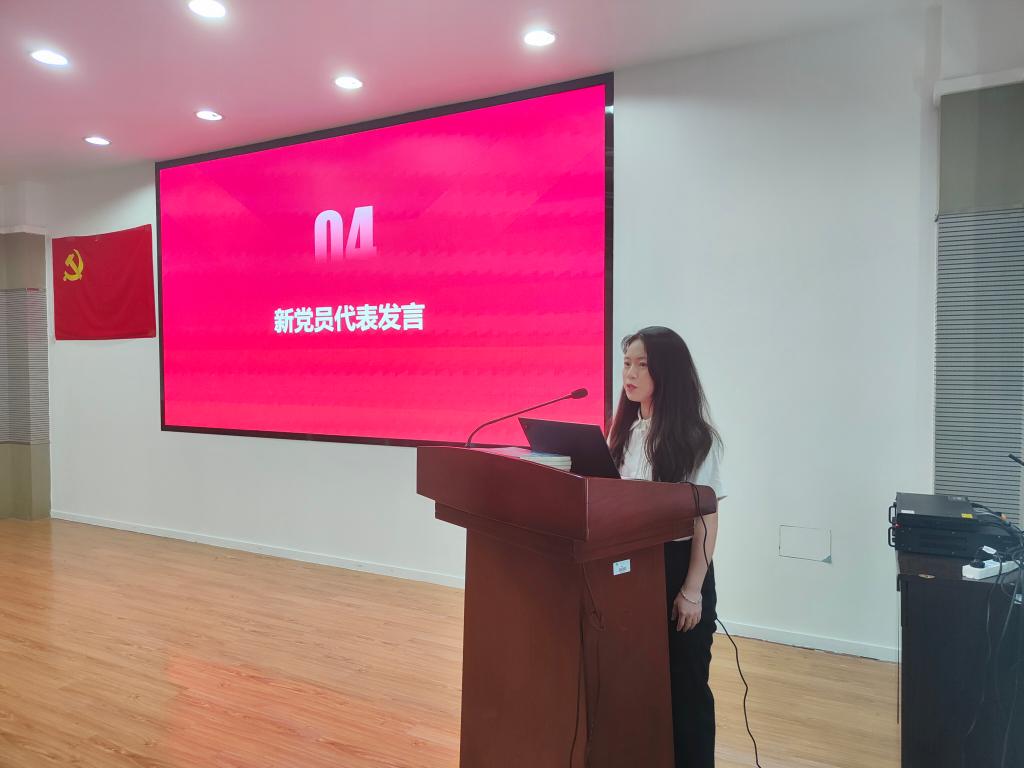 21纺硕的崔梓盈同志代表全体新入党的预备党员发言。她表示:“会时刻牢记全心全意为人民服务的宗旨,充分发挥作为一名共产党员的先锋模范作用。要锻造过硬本领,鼓足笃学上行的拼劲,以努力学习自身专业知识为重,勇于创新,锐意进取,为祖国的蓬勃发展提供坚实基础。要用赤诚的爱党爱国之心与青春的智慧和汗水,努力为党的事业添砖加瓦。”