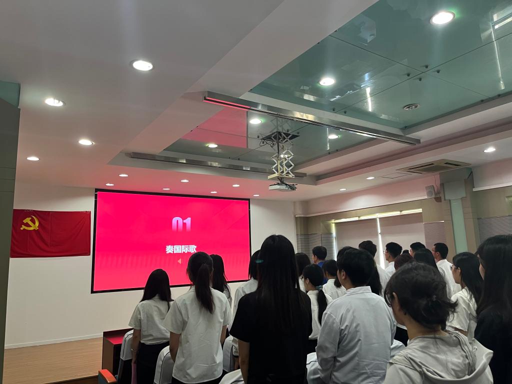 会议在庄严的《国际歌》中拉开帷幕。院党委副书记杨莉勤宣读了2022年9月至2023年6月新发展党员名单。随后,在光辉的党旗下,由院党委书记张菁燕领誓,40位新发展师生党员光荣宣誓,在场老党员重温入党誓词。党员同志们庄严而立,高举右拳,以铿锵有力的誓词筑牢共产党人的初心使命。