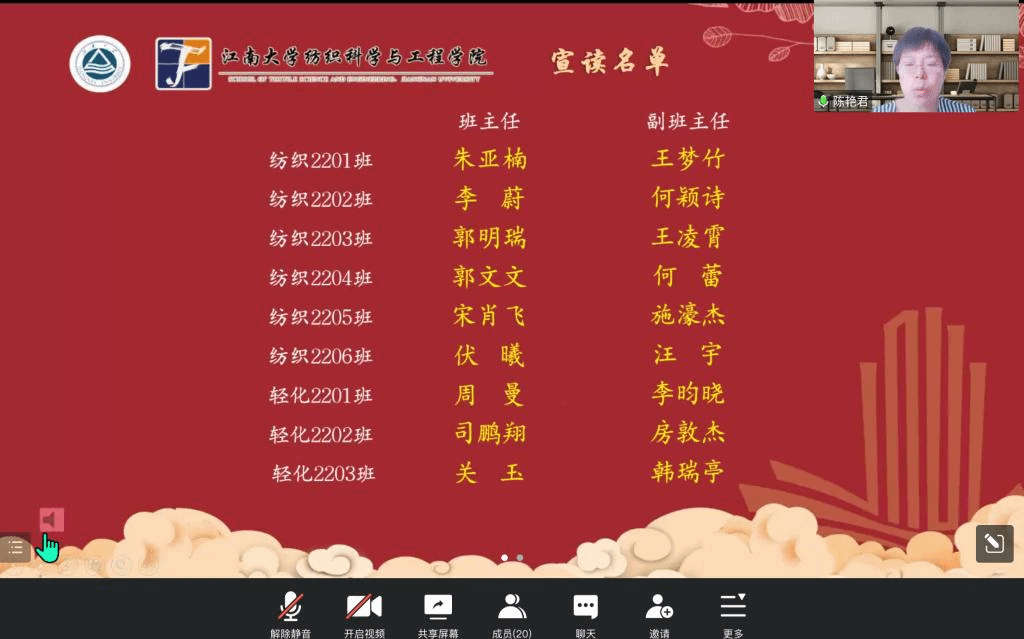 院党委书记张菁为2022级新生班主任线上颁发聘书
