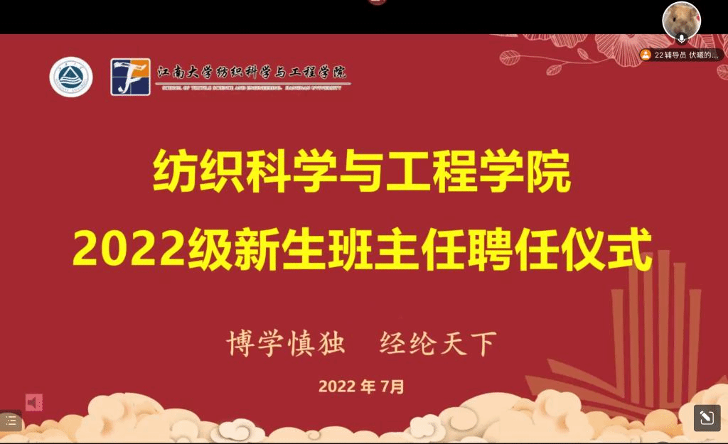 举行了2022级本科生班主任线上聘任仪式。院党委书记张菁、院党委副书记、副院长陈艳君、2022级新生班主任和副班主任参加聘任仪式。聘任仪式由2022级本科生年级辅导员伏曦主持。