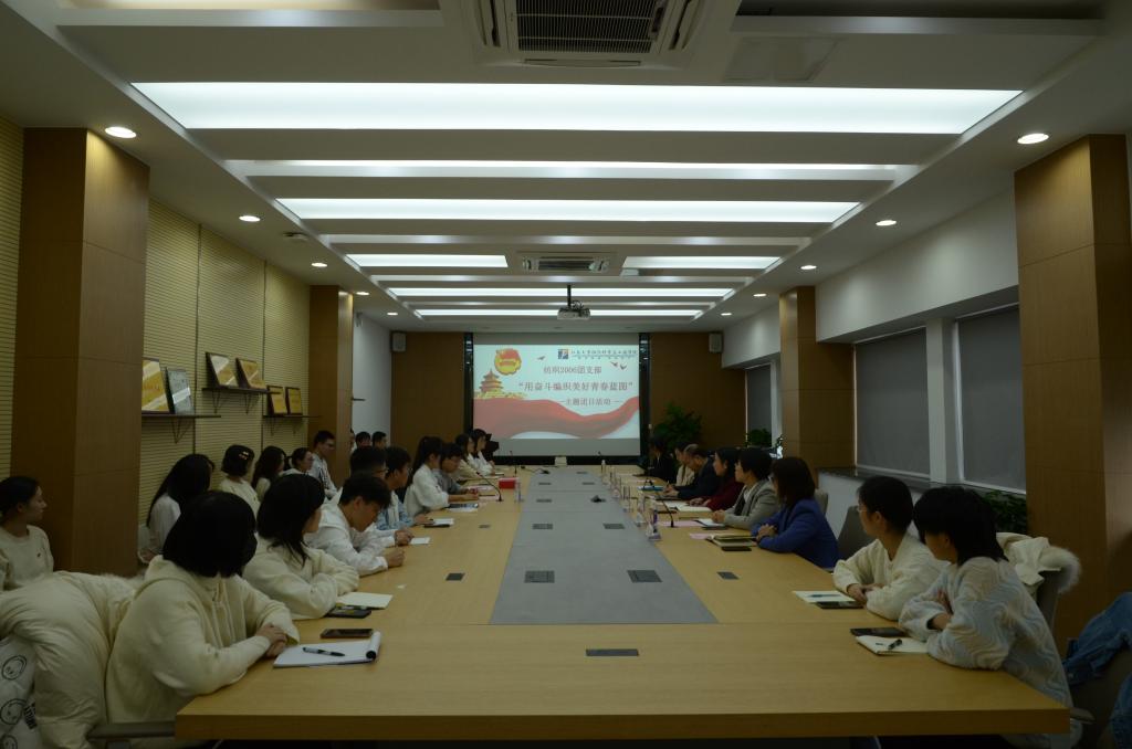 党委书记张菁,校团委副书记杨飏,学院党委副书记、副院长陈艳君,纺织2006班班主任丛洪莲,学院分团委书记、2020级本科生辅导员陈裕,学院学生会执行主席吕鑫,纺织工程2006班团支部全体成员参加本次活动。活动由纺织2006班班长、团支部副书记胡紫瑞主持。