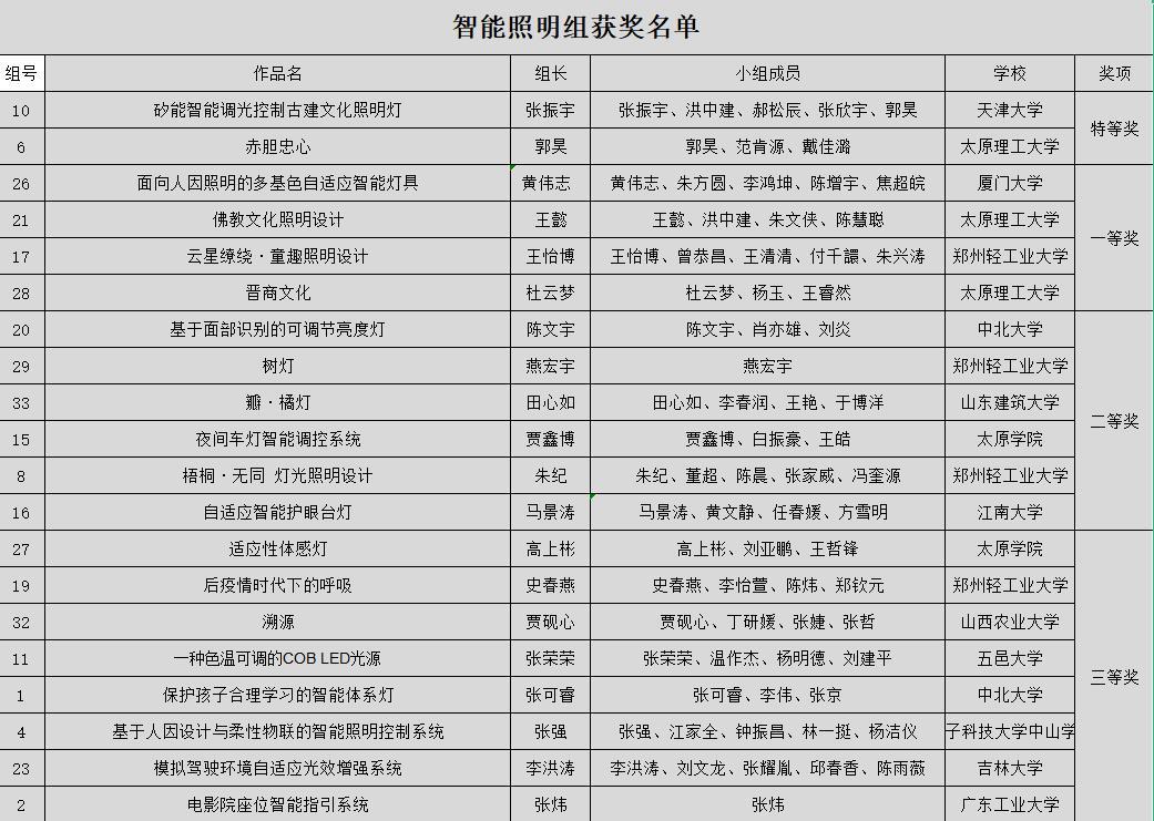 据了解,来自全国102所高校的146个参赛项目参与了本次大赛初赛,经过近4个月的激烈角逐,有40所高校的55个项目进入决赛,最终,40个项目脱颖而出,获得本次大赛的奖项。大赛分四个项目组进行比赛,即智能照明创意设计组、智能照明创业产品组、智能穿戴创意设计组、智能穿戴创业产品组。经过近五个小时的作品展示和现场答辩,现场共决出40个奖项,其中特等奖4个,一等奖8个,二等奖12个,三等奖16个。