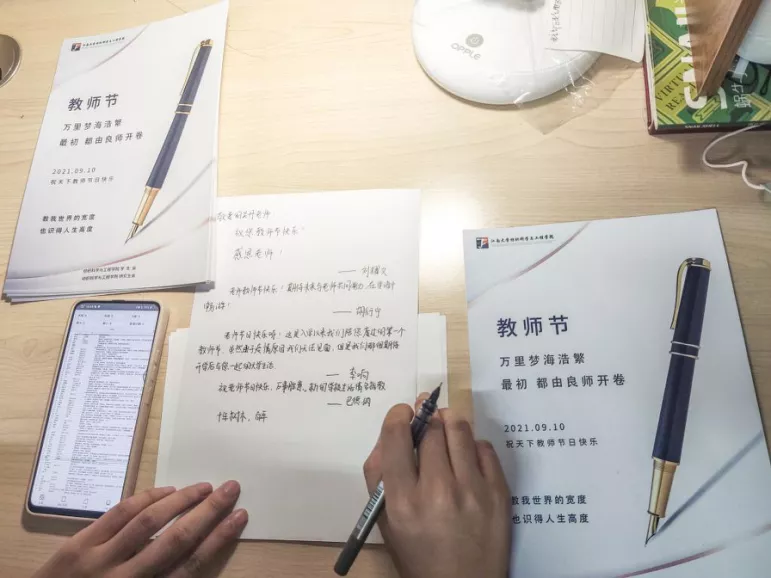 学生会和研究生会联合举办了“告白恩师,贺卡传情”我为老师送祝福的活动,共同祝愿学院老师节日快乐。