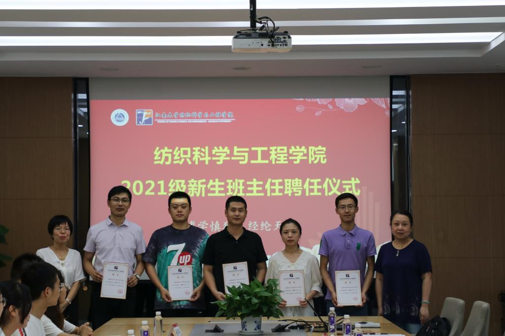 会上,陈艳君宣读了《ATM娱乐(中国)官方网站 2021级新生班主任聘任名单》,张菁为肖学良等9位新生班主任和黄杰等9位新生副班主任颁发聘书并合影留念。