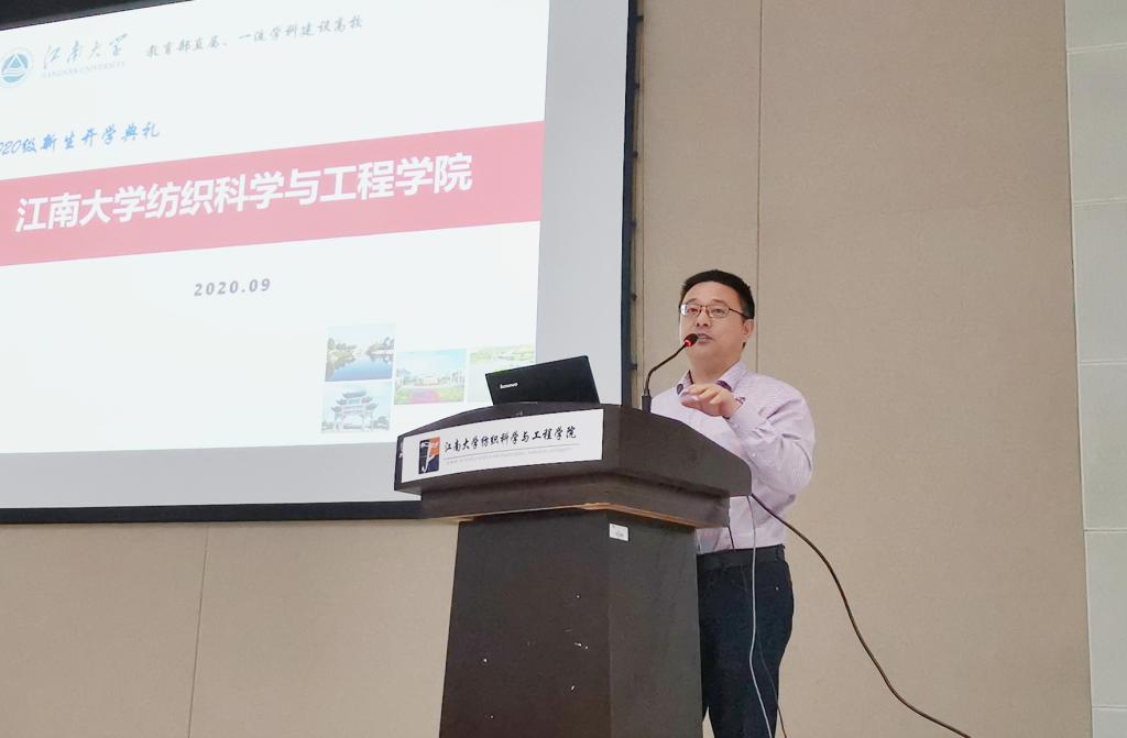 院长付少海教授作学院介绍,付院长首先从纺织行业的地位、纺织创新发展动态、纺织产业创新驱动发展三方面入手,向同学们系统地讲述了什么是当代的纺织,现代纺织行业的研究重点及方向。随后付院长介绍了江南大学及ATM娱乐 的历史沿革和发展方向,并着重介绍了纺织和轻化两个专业的建设情况、师资队伍、学科优势及特色、各科研团队的科研成果及获奖。在人才培养方面,付院长还着重介绍了全员参与的卓越工程师的培养计划、全员覆盖的大学生创新活动及江南大学-北卡罗莱纳州立大学3+X本硕培养项目。此外,付院长还就学院升学深造率、就业质量、第二课堂成果、杰出校友、奖助学金体系及纺织教育发展基金会等方面做了详细介绍。最后,付院长也告诫2020级本科新生,要确立自己的人生定位,做好大学发展规划;要养成良好的生活习惯,保持健康的体魄和心理;要不断拓宽学术视野,学会思考问题,提高文化修养。