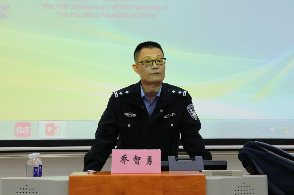 2019年11月10日晚,纺织服装学院、医学院在2教A127教室,共同举办2019级本科生安全知识讲座,主讲嘉宾为滨湖区公安分局内保大队副大队长乔智勇警官。