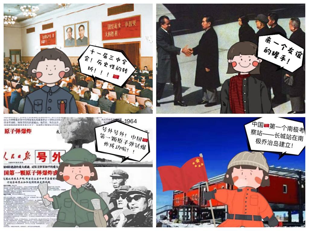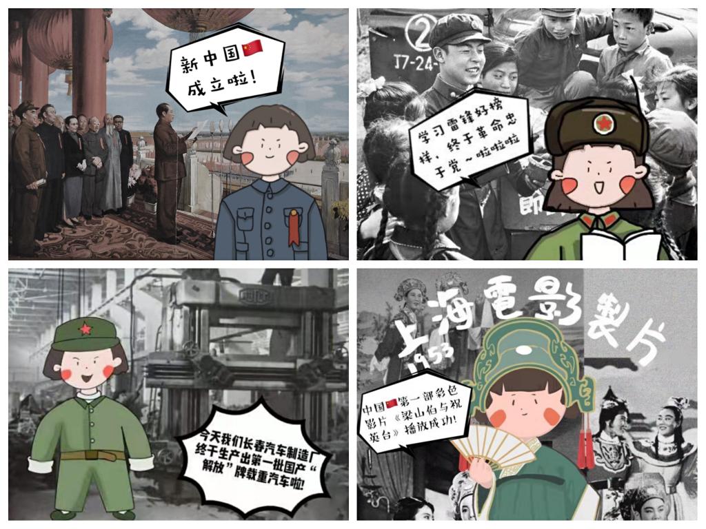 时值“阿中哥”——中华人民共和国成立70周年,江南大学纺织服装学院本科生低年级党支部党员作为“阿中哥”的“铁粉”,拿起画笔,把对“阿中哥”的爱凝成笔下一位追寻强国梦的女孩——小纺。她穿上那个时代或是流行服装,或是工作制服,与珍贵历史合影,以回溯“阿中哥”风雨兼程、砥砺前行的伟大历程,全面呈现“阿中哥”70年发展成就。