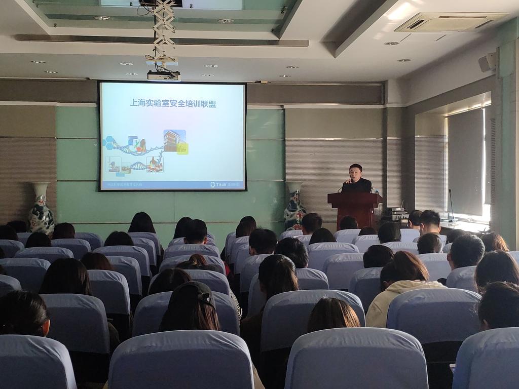 实验室安全的宣传、教育、管理工作,提高学院师生安全防范意识,2019年3月15日上午,学院在A103会议室举行了实验室安全教育讲座。讲座邀请泰坦科技、上海实验室安全联盟成员曹云老师主讲,纺织服装学院副院长潘春宇主持,学院2018级全体研究生参加讲座。