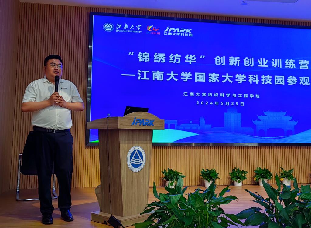 “锦绣纺华”创新创业训练营前往江南大学国家大学科技园参访调研,无锡市滨湖区劳动保障管理中心副主任吴桢萌、无锡威尔森淀粉工业有限公司总经理周宇、江南大学科技园企业服务部主任任振宇受邀做专题讲座,ATM娱乐