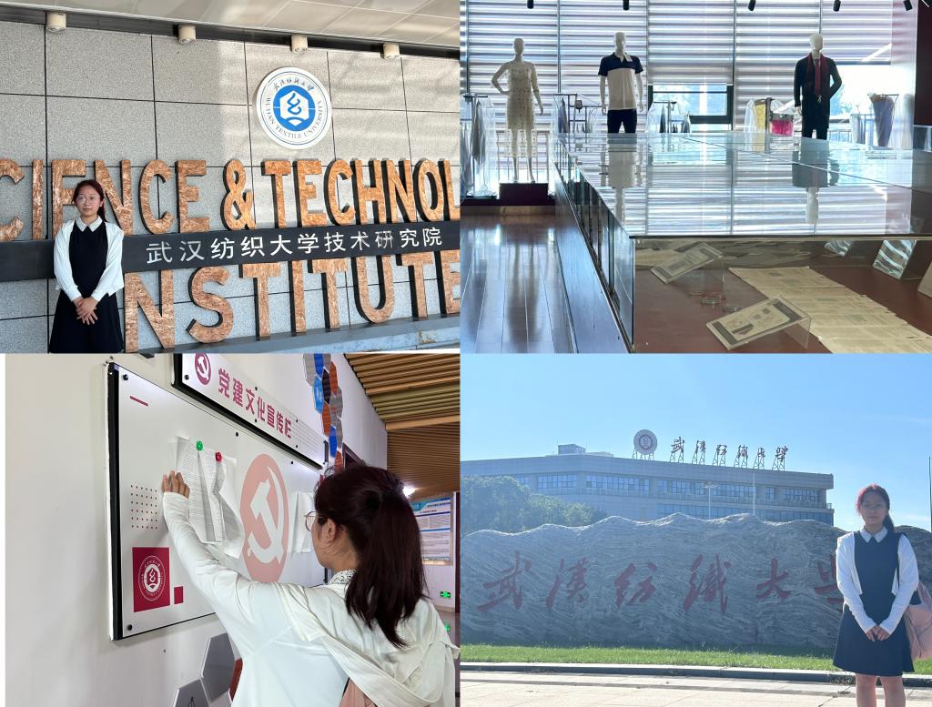 实践团队成员肖楚橦同学从广州博物馆启程,追溯红色基因与纺织文明交织的悠远足迹,继而北上探访到常州、湖州、海安等城市纺织企业腹地,目睹从古老织机的低吟浅唱到现代机械轰鸣的华丽转变。她深切体会到纺织作为民族工业的重要基石,在不同历史时期扮演的关键角色与重要价值。纺织实践团队成员李天赋同学来到武汉纺织大学,深入参观纺织新材料与先进加工技术重点实验室,探寻纺织艺术中的红色元素。李天赋同学感慨:“我沉浸于前沿纺织技术的魅力,并深刻领悟纺织行业在弘扬中华优秀传统文化、推动民族复兴进程中的关键作用。”