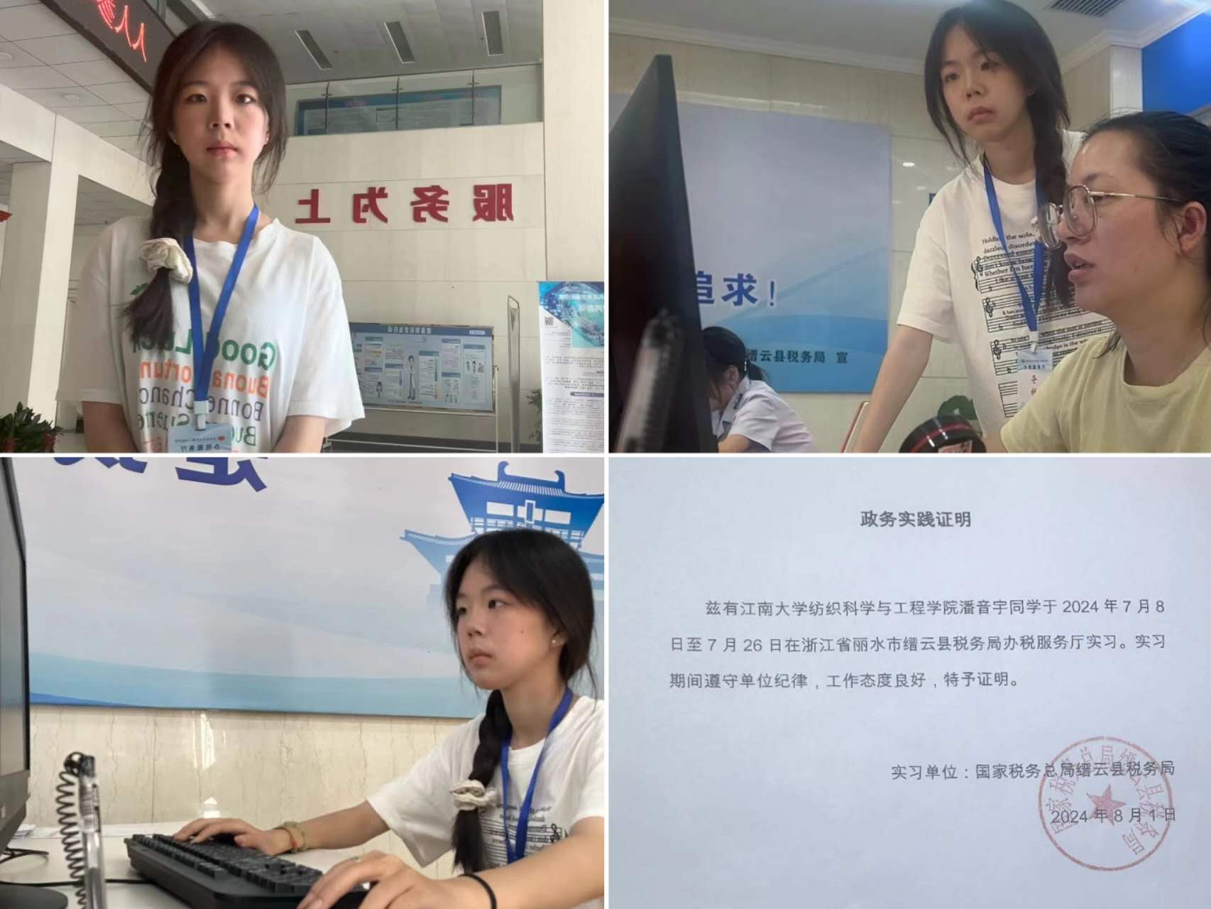 潘音宇同学前往浙江省丽水市缙云县税务大厅开展实践