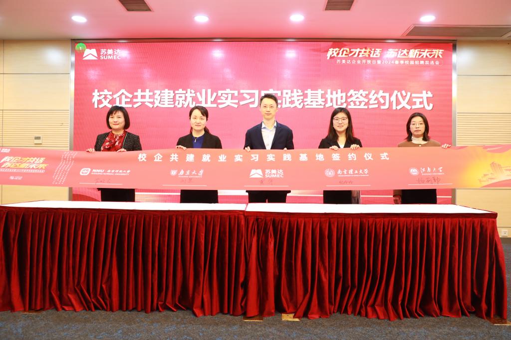 本次活动恰逢苏美达集团举行首届“校企才共话 苏达新未来”企业开放日暨2024年春季校园招聘双选会,来自省内南京大学、东南大学、南京航空航天大学、江南大学等9所重点目标高校的224位师生现场参加双选会,苏美达集团党委副书记陈峰及相关部门负责人出席活动。双选会通过丰富多样的形式,充分展示了苏美达企业形象、特色文化、人才需求以及员工发展机制,此外,包含我校在内的省内9所高校代表与苏美达集团签订校企共建就业实习实践基地。活动中,ATM娱乐