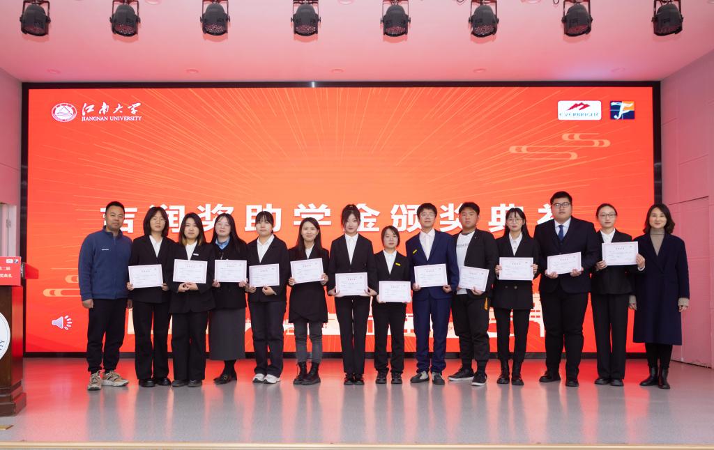 陶东秀代表设奖单位发言,她表示吉润国际将进一步加强与江南大学的人才培养与产学研融合,充分利用大学人才和研发优势,共同搭建创新型人才培养平台,共赢未来更加广阔的发展空间。获奖学生代表向设奖单位献花,表达对吉润公司的感激之情。