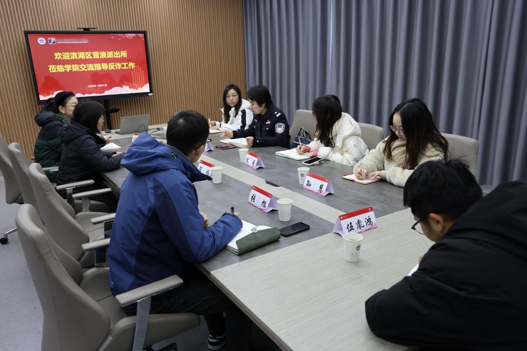 针对校园反诈工作,杨莉勤表示,学院一直以来都高度重视反诈工作,宣传反诈知识、定期摸排情况、召开主题班会,未来将进一步加强与警方的合作,加大对学生的安全教育宣传力度,提高学生的防范意识和应对能力,构建“学院-年级-班级-宿舍”四级联动工作体系,进一步落实“无诈校园”建设,与警方保持密切合作,共筑防诈“安全墙”。
