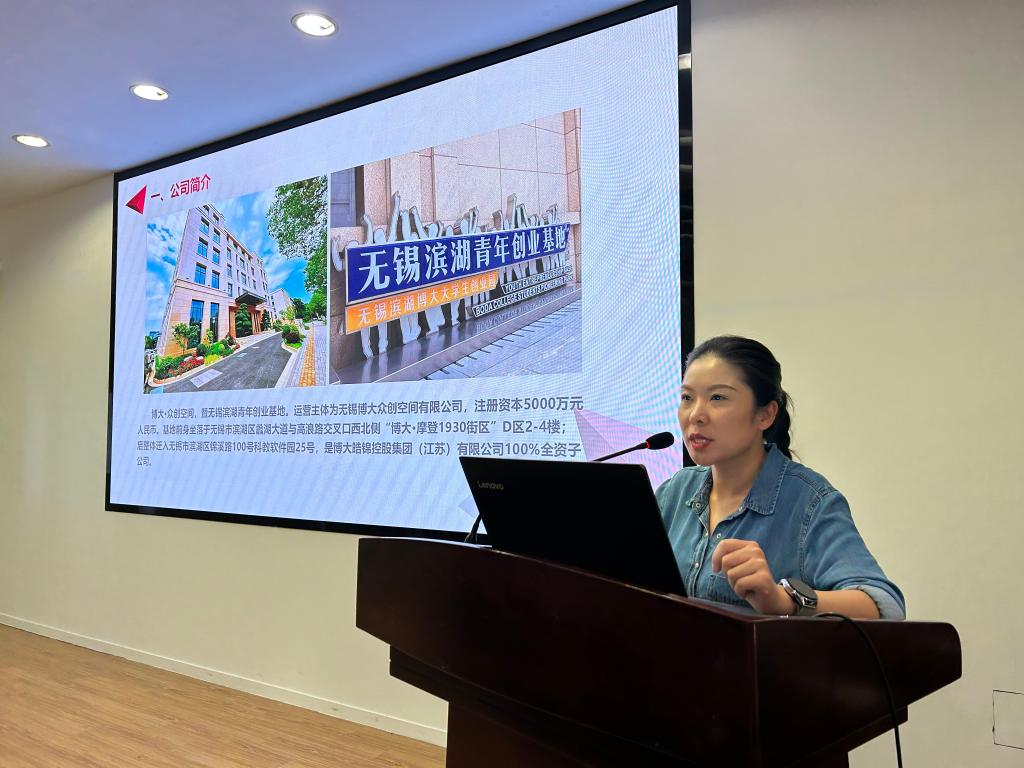 会上,吴梓萌介绍创业扶持政策,他以科技感满满的创业项目为例,分享滨湖区创业优惠政策——“0”成本创业,从扶持对象、扶持内容、创业优惠政策等方面进行详细解读,通过创业场所减免租金和享受创业扶持政策,最终实现“0”成本创业。同时,他还介绍了滨湖区的创业场所和创业孵化基地,以及创业大赛等各项资助渠道。他鼓励在校大学生勇于尝试创业。左艳具体介绍了博大·众创空间相关情况,公司位于江南大学南门科教软件园内,温馨的办公环境让创业大学生“孵化”自己的梦想;她还介绍了公司在政策落实、创业指导、滚动孵化、经验交流等方面的举措成效。