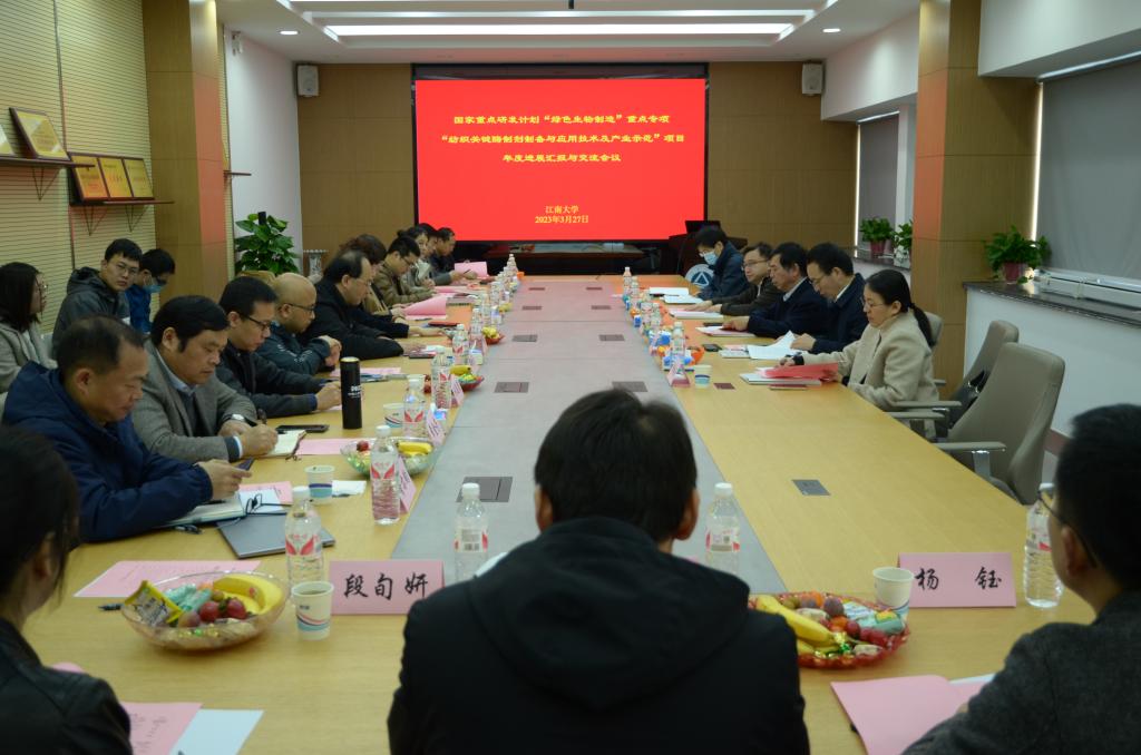 3月27日,由江南大学牵头承担的国家重点研发计划“绿色生物制造”重点专项“纺织关键酶制剂制备与应用技术及产业示范”2022年度总结交流会议在江南大学顺利召开。项目咨询专家、中国工程院院士、中国农业科学院研究员姚斌,江南大学党委常委、副校长堵国成,南京工业大学科学研究院院长姜岷、苏州大学教授邢铁玲、无锡协新毛纺织股份有限公司教授级高工朱华君,ATM娱乐(中国)官方网站