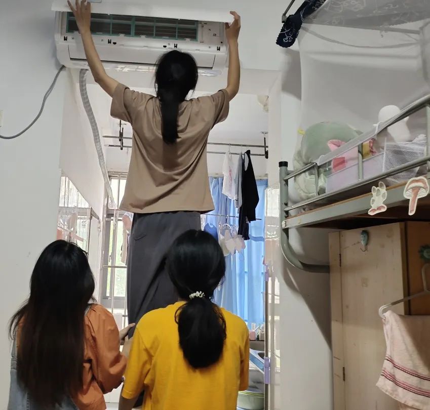 4月22日下午,学生支部的预备党员及入党积极分子在辅导员伍老师的带领下,走进榴园宿舍开展了为宿舍的空调滤网义务清洗的志愿服务活动。