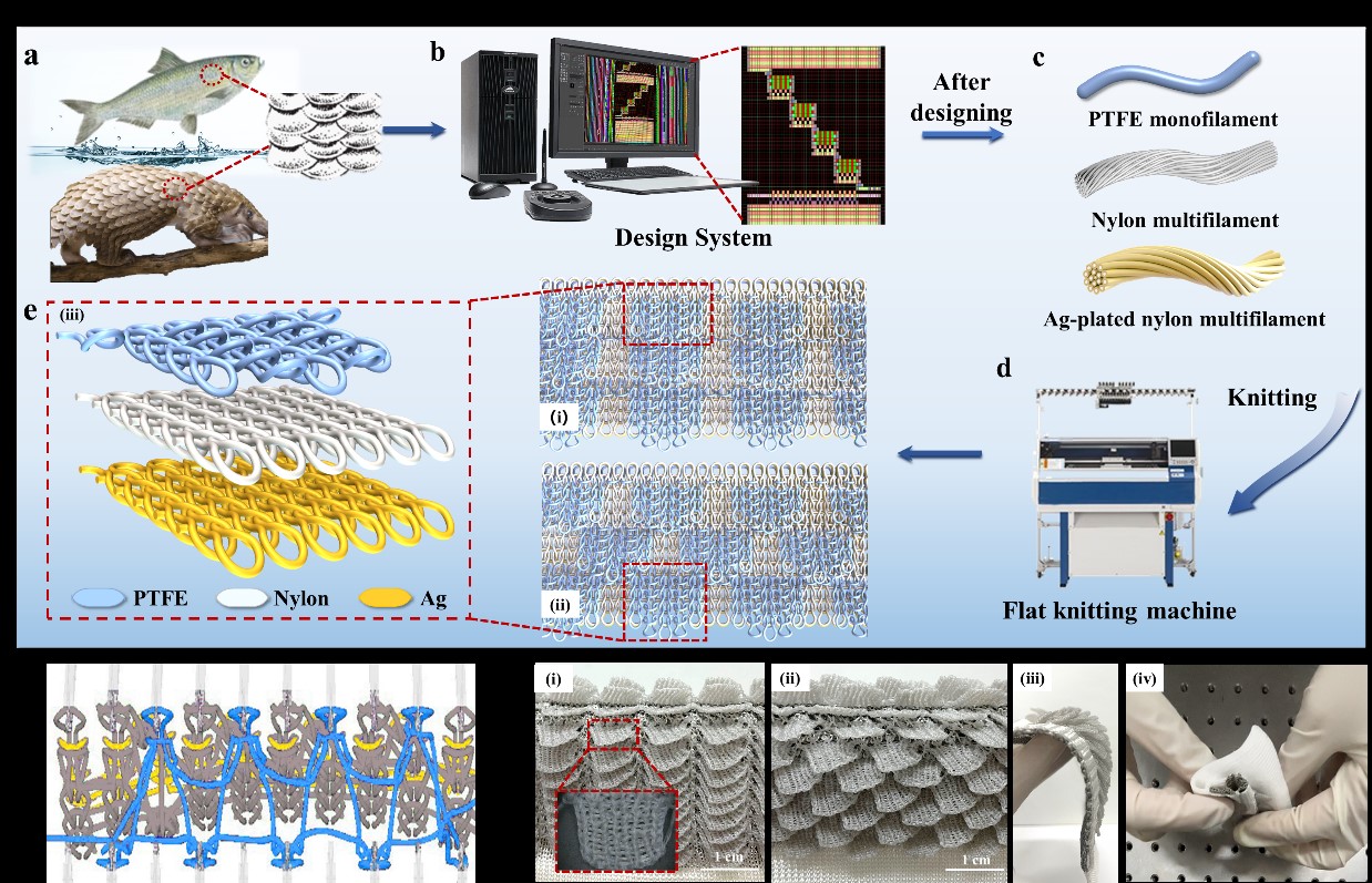 该工作近日以“Industrial production of bionic scales knitting fabric-based triboelectric nanogenerator for outdoor rescue and human protection”为论文标题在线发表在《Nano Energy》期刊(IF=17.881)。针织中心博士研究生牛丽为论文第一作者;江南大学针织中心蒋高明教授、马丕波教授与陈超余副研究员为论文共同通讯作者。该研究得到了国家自然科学基金(11972172)、省部共建纺织新材料与先进加工技术国家重点实验室开放课题基金(FZ2021013)资助。