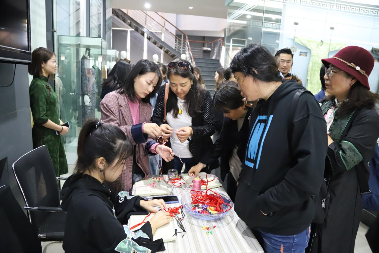 在旗袍展的开幕式上,纺织服装学院党委书记张菁对此次文化展演活动的顺利举办表达衷心的祝愿,并对盟员在江南大学学科建设、人才培养中的奉献精神和做出的成绩表示感谢与肯定。洪雅副主委代表盟市委向此次文化展演活动致辞,并对为民盟事业发展做出努力的盟员表示感谢,并对旗袍的发展及流行进行了简单而全面的介绍,对中华传统文化传承与发展的美好前景寄予期望。开幕式后,与会领导及嘉宾参观了民间服饰传习馆的旗袍展陈,牛犁副教授结合文化讲座内容向大家一一介绍展品。展厅内还设有盘扣手工制作台,参观者纷纷尝试,亲身实践传统文化。