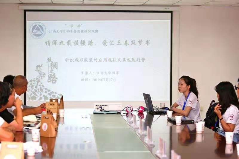 江南大学2019年暑期援疆实践团通过专业性的调研、授课等实践活动,在逐梦前行的援疆路上,精准帮扶当地企业培养新型纺织创新人才、提高技术发展能力,为提升纺织行业从业人员素质、解决新疆贫困户就业问题起到了推动性作用。
