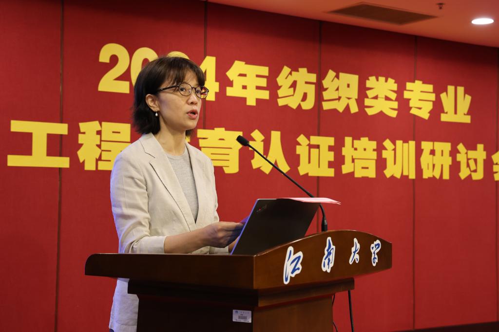 承办的2024年纺织类专业工程教育认证培训研讨会在我校图书馆510多功能厅顺利召开。江南大学党委常委、副校长张影陆,中国纺织服装教育学会会长倪阳生分别致辞。纺织类专业委员会主任、东华大学教授丁辛,东华大学郁崇文、浙江理工大学陈建勇、江南大学王鸿博、天津工业大学王瑞、苏州大学孙玉钗等委员,以及全国多所纺织类院校相关领导、专业负责人及骨干教师150余人参加会议。会议由中国纺织工业联合会监事会副监事长、纺织类专业委员会副主任兼秘书长孙晓音主持。