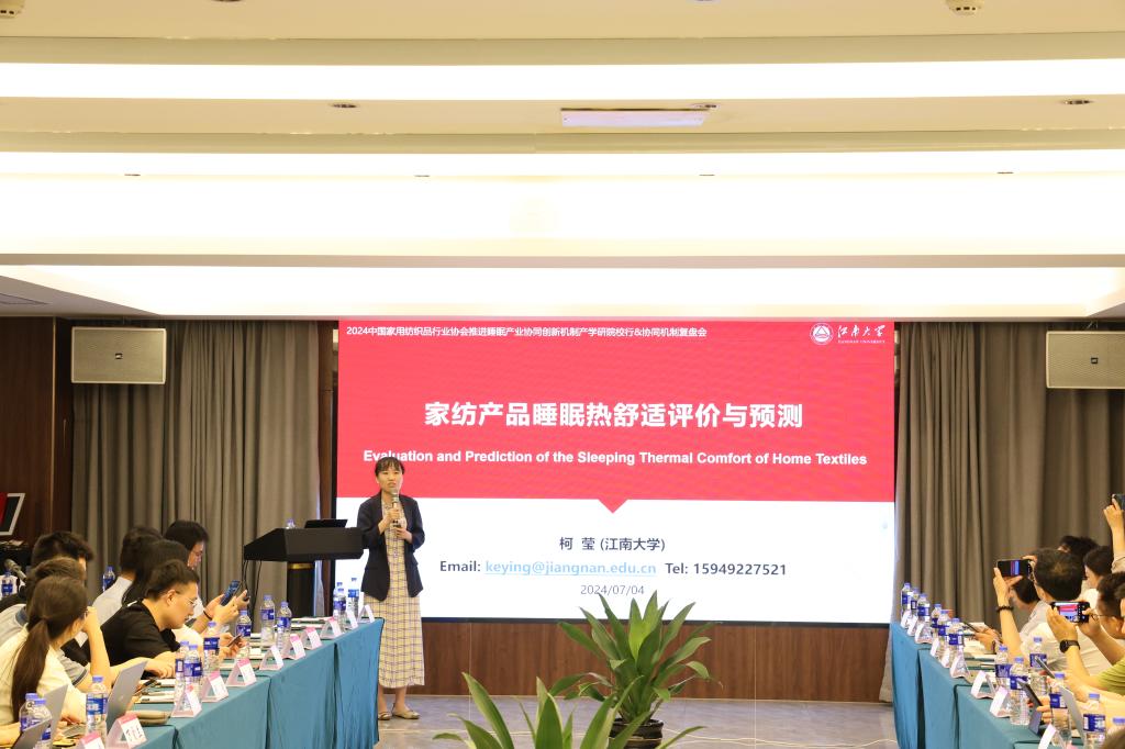 学术报告环节,纺织工程系主任肖学良教授以《居家穿戴式睡眠监测系统的开发》为题,介绍了如何利用先进的传感技术和数据分析方法,开发出高精度的居家穿戴式睡眠监测系统。服装系主任柯莹教授以《家纺产品睡眠热舒适评价与预测》为题,探讨了如何通过科学的方法对家纺产品的热舒适性进行评价和预测。针织技术教育部工程研究中心万爱兰教授以《针织在家纺健康产业中的创新应用》为题,分享了针织技术在家纺产品中的创新应用案例。互动交流环节,企业代表们积极发言,发布各自企业在技术研发和创新方面的具体需求,希望通过与江南大学的产学研深度合作,解决企业在生产和研发过程中遇到的技术难题。双方就技术需求和科研成果展望进行了详细探讨和深入对接交流。