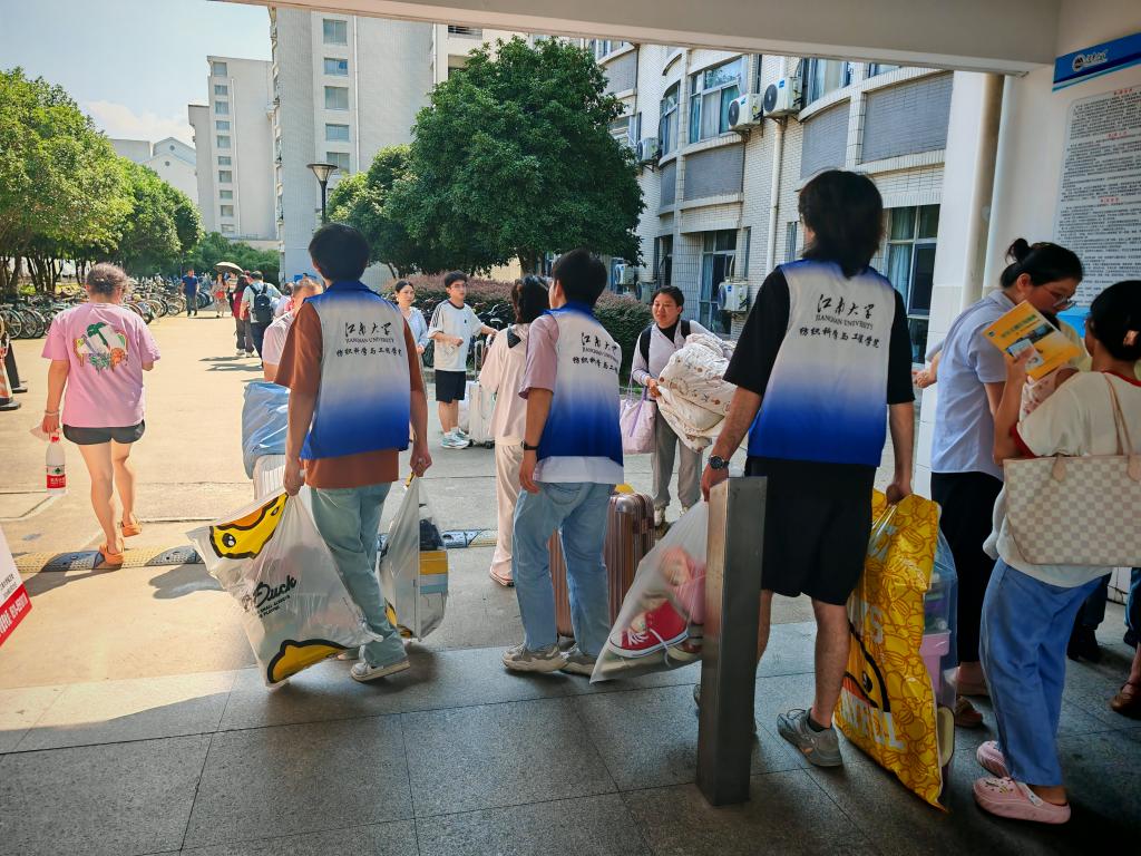 学院学生会、研究生会、党员先锋队组建了志愿者服务队,从朝霞出现到晚霞消逝,志愿者们的贴心服务为新生搭建了一条充满温情的迎新通道。他们的身影穿梭在迎新点与宿舍楼之间,为新生提供校园引导、搬运行李,为新生完成入学报到、材料领取,抑或是举起手中相机定格记录那充满活力的灿烂笑容,为萌新们的来“纺”提供了细致的服务与温暖。