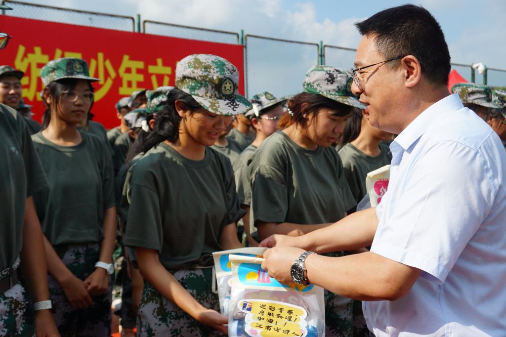 纺织学子们在教官的指挥下,以严整的队列向亲临慰问的领导们展现了阶段性训练成果。领导给军训学生发放慰问品,同学们倍感鼓舞,纷纷表示将以更加饱满的热情和坚毅不拔的态度投入到接下来的每一次挑战中,为开学第一课交出一份完美答卷。