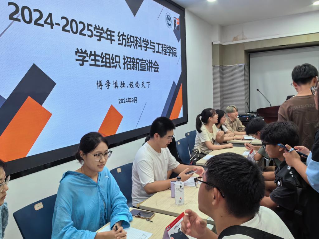 9月11日晚,学院学生组织招新宣讲会在学院A103和B104正式开始。主持人张宁恬、宋雨虹从学院学生组织概况及架构两个方面进行简要阐述。各部门宣讲人依次从部门简介、成员介绍、部员收获、招新要求等多个方面展开宣讲,向新生们展示各个部门的独特魅力,展现其中蕴含的无限可能。宣讲后,各部门召开招新初试,纺织学子们彼此间建立起一道道无形的桥梁,共同在纺院大家庭中找寻温暖、结识伙伴、收获成长。