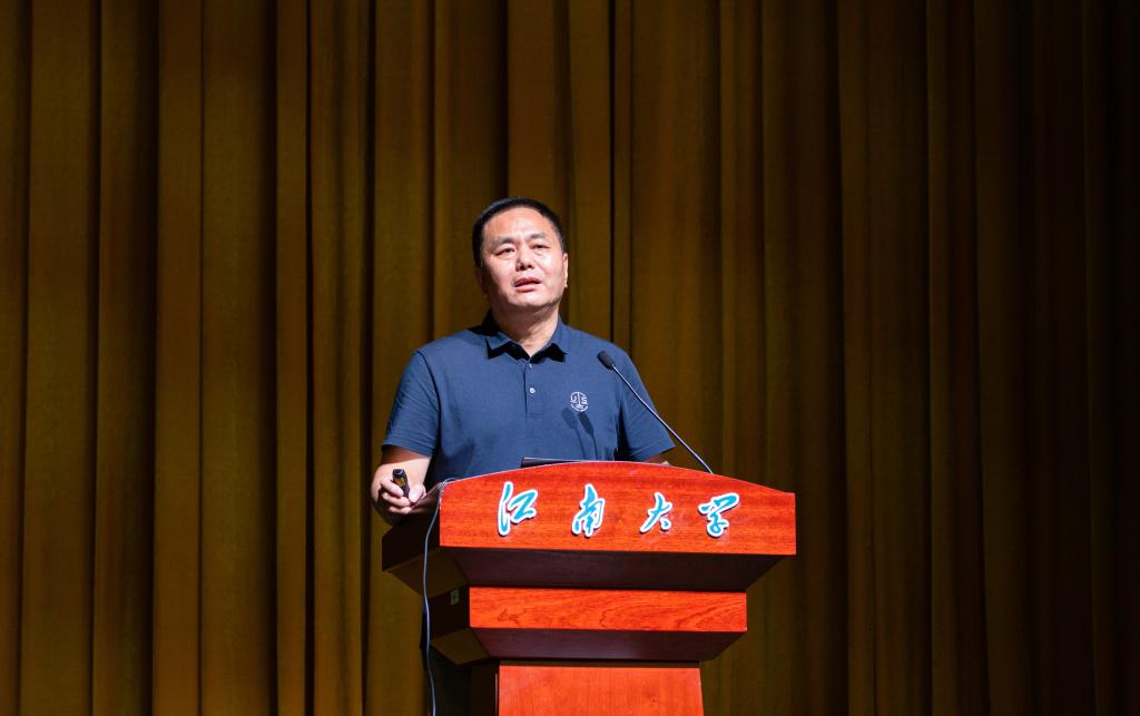 在文浩馆观众厅举行“纺织江南”名师讲坛首讲报告。中国纺织工程学会理事长、中国纺织工业联合会检测中心主任伏广伟受邀作“新质生产力与科技创新赋能产业高质量发展”主题报告,学院2024级全体新生及高年级学生代表800余人参加。报告由学院党委书记张菁燕主持。