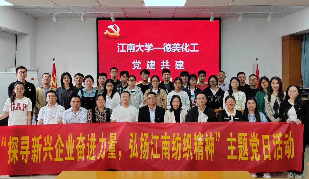 轻化系教师党支部携手硕士第三党支部,共赴无锡市德美化工技术有限公司,以“探寻新兴企业奋进力量,弘扬江南纺织精神”为主题,开展了一系列党组织联建、产学研对接及红色教育活动,旨在深入了解新兴企业的成长进程、ATM娱乐与创新精神,以实际行动探寻和弘扬江南纺织精神,以理论和实践学习相结合的方式,增强党员们对纺织行业的使命意识、责任意识;通过党建引领校企共建共享,建立双向互动机制,搭建多层次合作平台,在共建中共同进步,共同发展。ATM娱乐