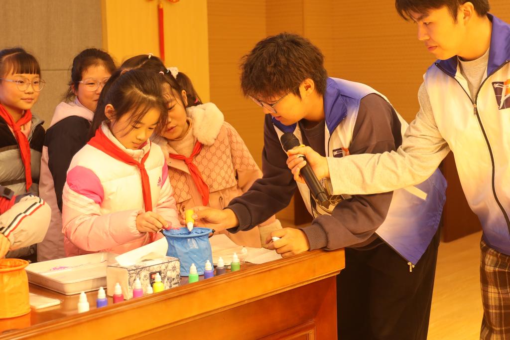 宣讲结束后,宣讲团精心组织纺织特色体验活动——水拓书签制作,将现场气氛推向高潮。学生们在画液与颜料的奇妙融合中,自由挥洒创意,绘制