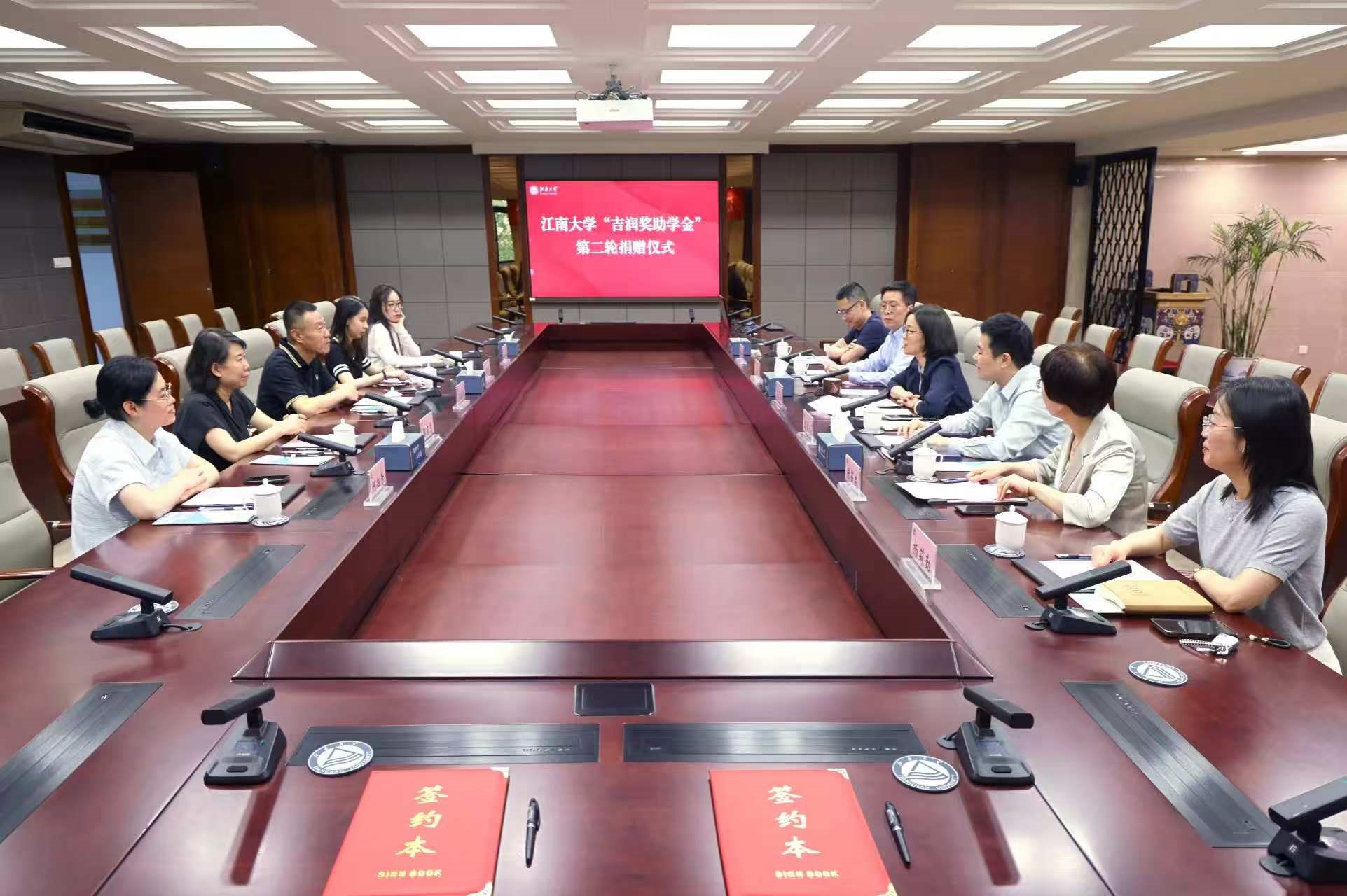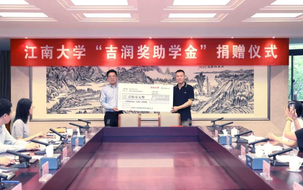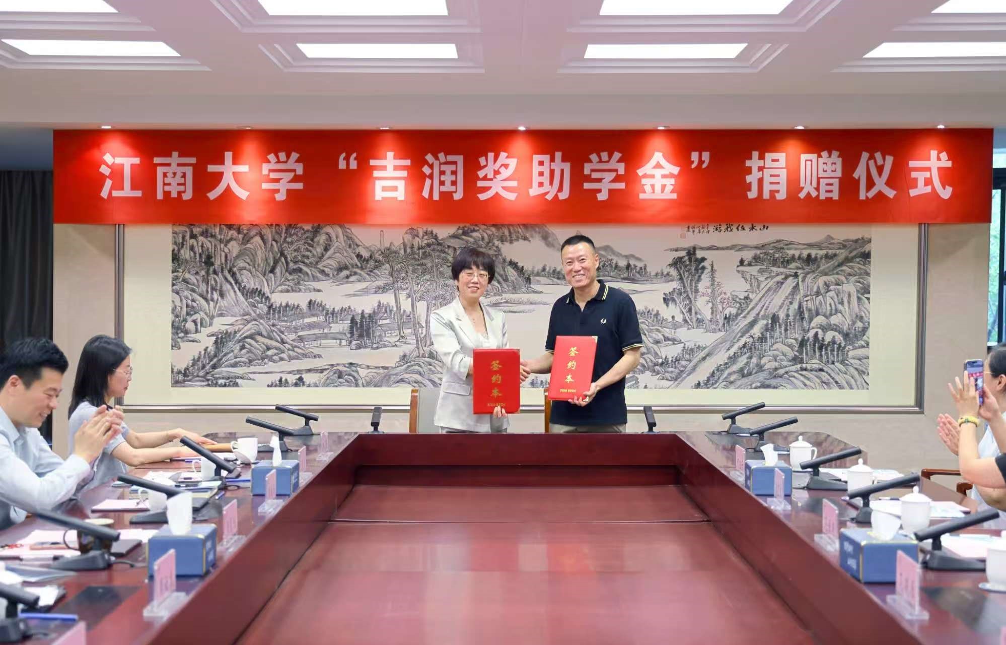 5月12日,江南大学与无锡市吉润国际贸易有限公司在行政楼B305会议室举行第二轮“吉润奖助学金”捐赠签约仪式。无锡市吉润国际贸易国际有限公司董事长范恒明、副董事长范晓雁携企业代表,江南大学副校长张影陆、学生工作部(处)部(处)长周伟涛、社会合作与校友联络处处长周云龙、教务处副处长黄锋林,ATM娱乐