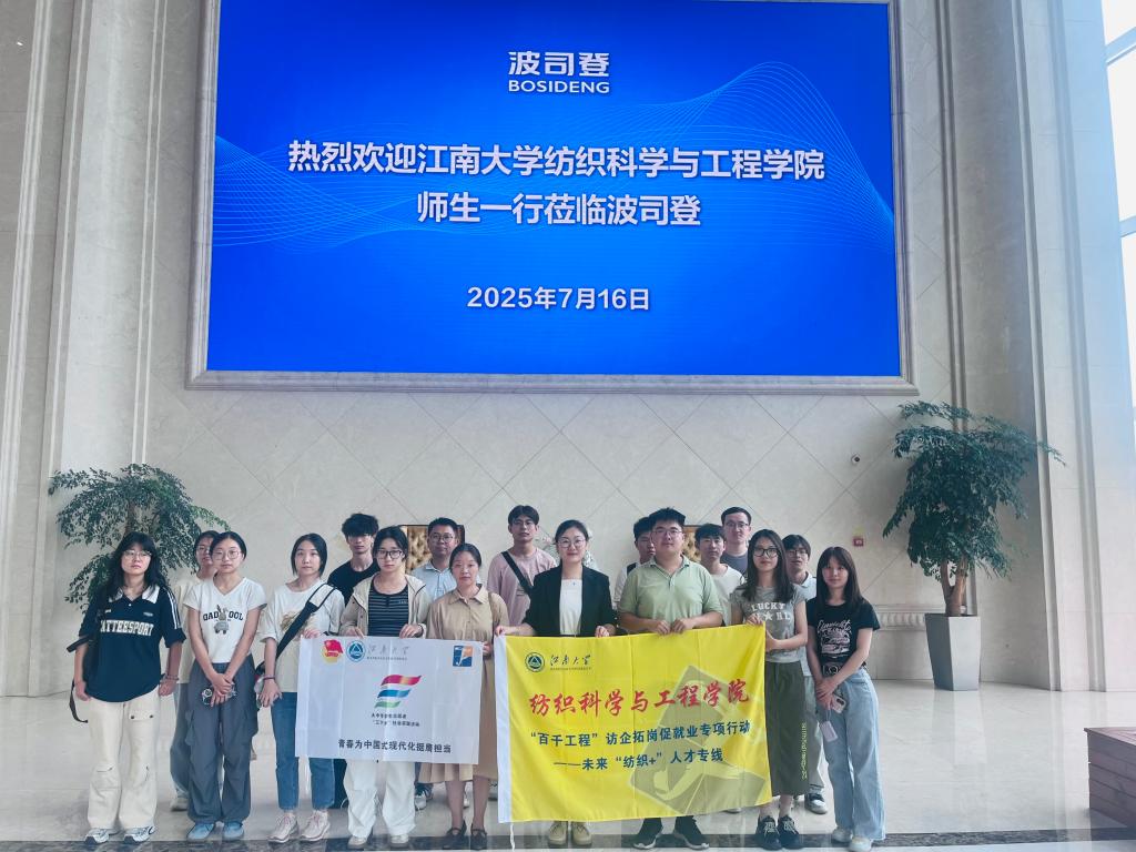 薪火纺智实践团以“行走的思政课”为载体,深入海澜集团、波司登集团、江苏联发纺织股份有限公司三家行业标杆企业,扎根产业一线探索新质生产力,解码江南纺织精神的当代内涵,在实践中明确纺织青年的使命与方向。
