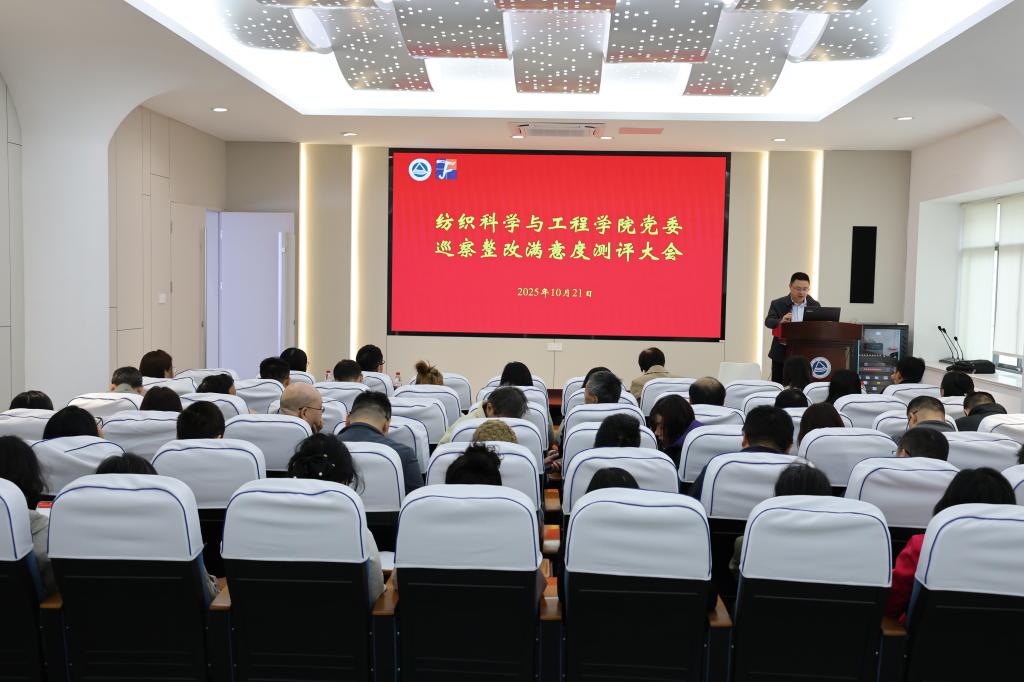党委在学院A103会议室召开巡察整改满意度测评大会。学校党委巡察整改专项督查第二督查组成员季王飞、夏京璟,学院党委领导班子成员、全体教职员工、学生代表参加此次会议。会议由学院院长付少海主持。