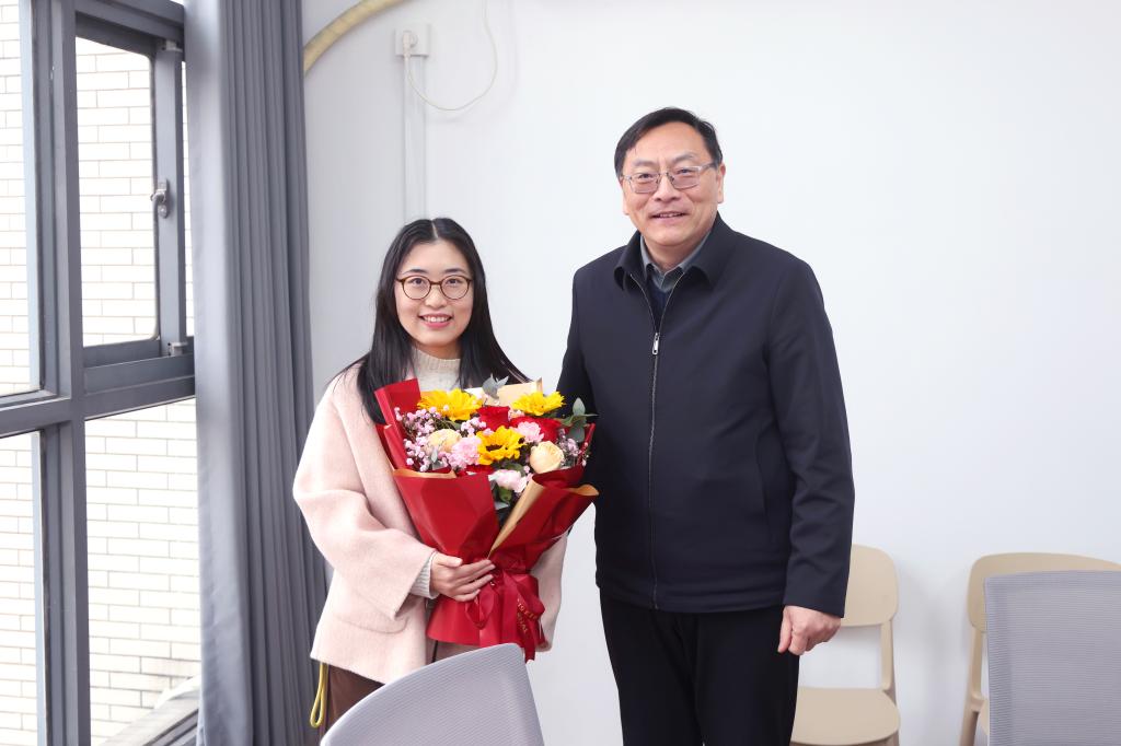 吴正国为李蔚老师送上鲜花和节日祝福,并通过她向全院女教职工表达诚挚的问候和美好的祝愿。在交流中,吴书记细致询问李蔚老师的工作进展与生活情况,认真倾听她在人才培养、教育教学等方面的心得与体会,充分肯定了她在教学创新大赛和课程建设中取得的优异成绩,他鼓励李蔚老师继续发扬优良作风,为学校学院的发展贡献更多智慧和力量。