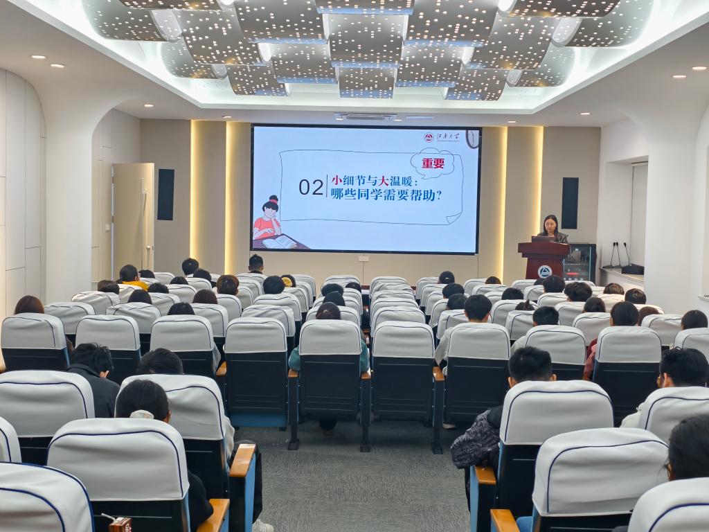 针对不同年级学生的心理特点和宿舍管理需求,学院分年级开展宿舍长专项培训。面向低年级宿舍长,重点讲解宿舍人际关系协调、新生适应引导、日常心理状态观察等内容,引导宿舍长主动关注室友情绪变化,及时化解宿舍矛盾,帮助新生快速适应大学生活;面向高年级宿舍长,聚焦学业压力疏导、就业焦虑缓解、宿舍安全隐患排查等重点,指导宿舍长发挥“领头雁”作用,带动宿舍成员互帮互助、共同进步,同时明确宿舍长在心理危机预警中的职责,确保及时发现、准确上报、有效干预。