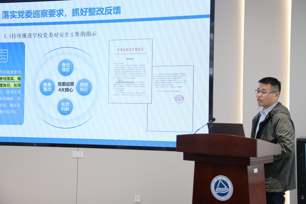 蔡以兵围绕实验室安全作报告。他强调,实验安全是关乎健康、生命的头等大事,须压紧压实安全管理责任,深化安全教育培训,强化日常巡查监督,推动实验室数字化、信息化建设,做好动态监管与风险防控,共同营造高效、安全有序的实验环境。