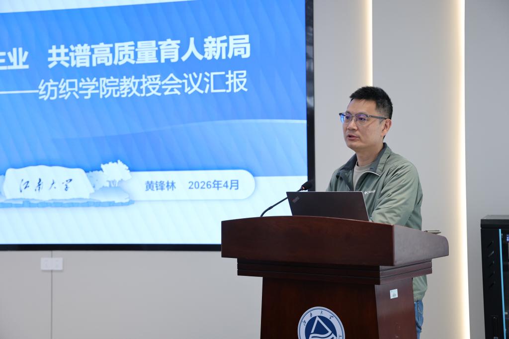 黄锋林就学校在本科招生、教学改革与教师发展等方面作报告。他提出,招生要以专业优化调整为突破口,讲好纺织故事,筑牢优本扩容基础;教学要紧跟时代,把好技术与质量关;综合实施人工智能赋能教师发展行动,推动教学质量跃升。