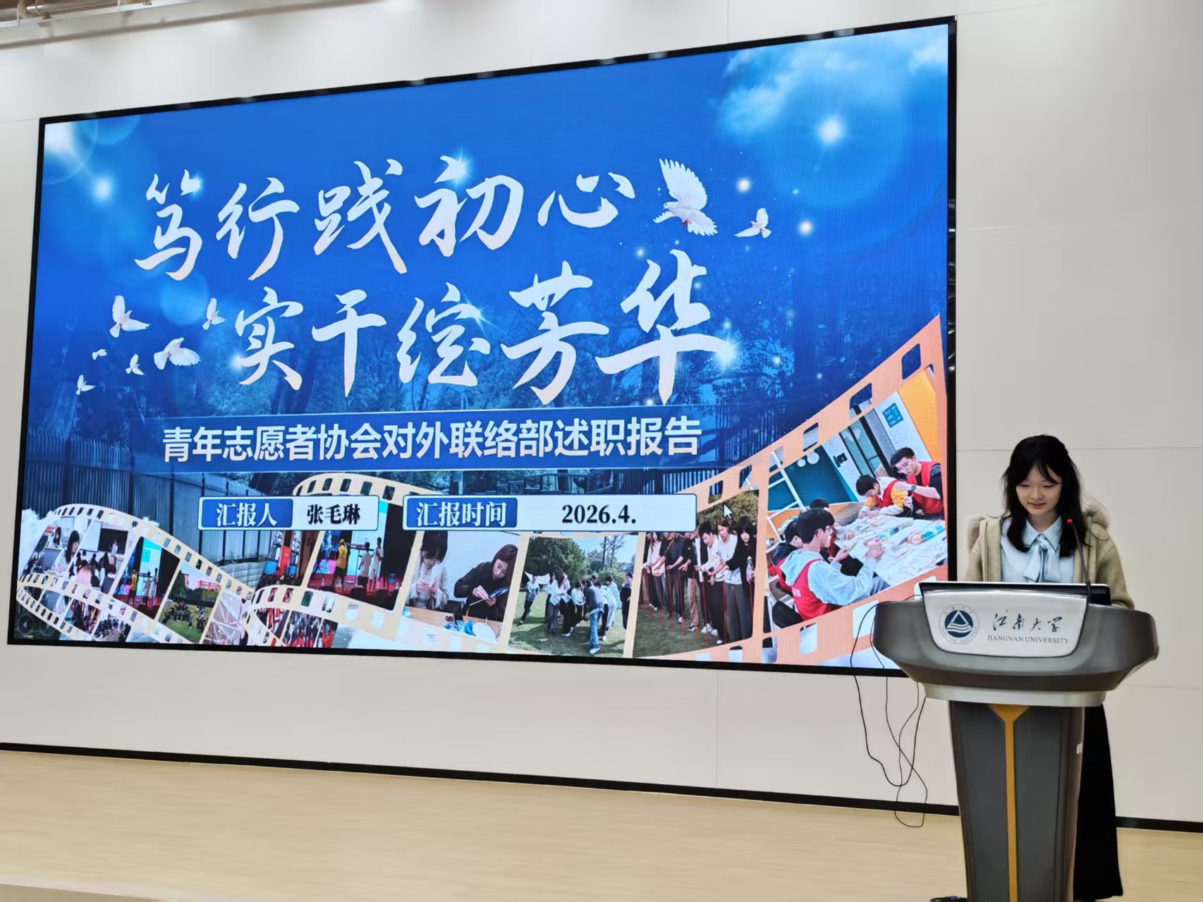 学院学生组织各部门代表立足核心职能与工作实际,聚焦思想引领、学风建设、校园文化、志愿服务、创新创业等重点领域,围绕年度工作成效总结、问题分析与改进、未来工作规划与展望等方面依次述职。会上进行了现场综合评分,并对获评本学年“优秀干事”称号的学生骨干予以表彰。